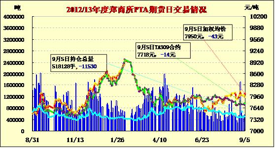 PTA期貨縮量減倉全線續(xù)跌(9-5)