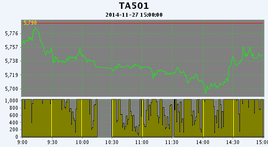 PTA期貨下探回升減倉收跌(11-27)