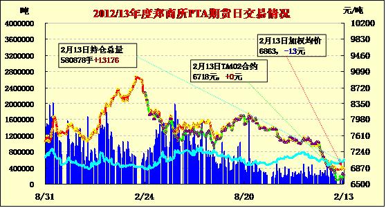 PTA期貨放量增倉繼續(xù)收跌(02-13)