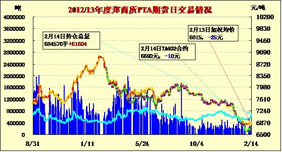 PTA期貨放量回升增倉續(xù)跌(02-14)