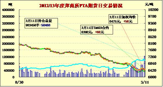 PTA期貨放量反抽減倉收漲(03-11)