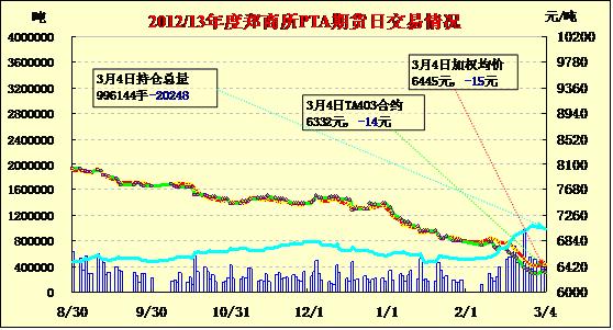 PTA期貨縮量減倉震蕩收跌(03-04)