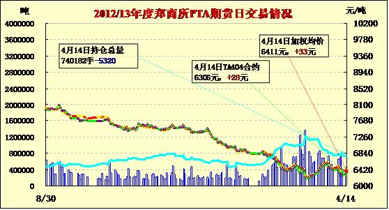 4月14日PTA期貨成交及持倉(cāng)排名表