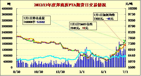 PTA期貨寬幅震蕩減倉收跌(07-01)