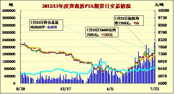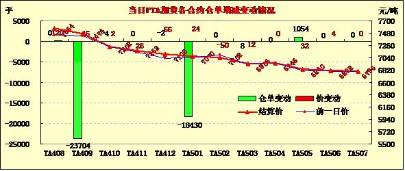 PTA期貨縮量減倉(cāng)繼續(xù)上揚(yáng)(07-23)