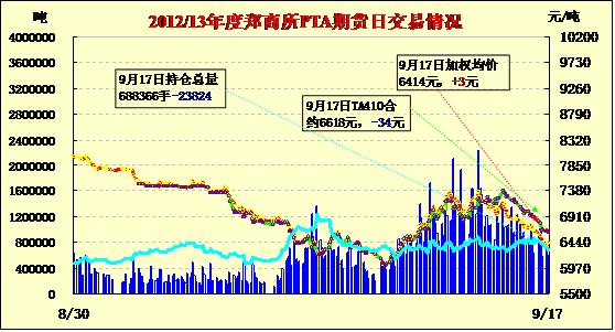 PTA期貨縮量減倉寬幅震蕩(09-17)