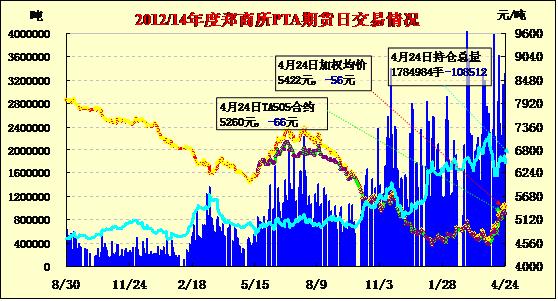 PTA期貨低開低走減倉收跌(04-24)