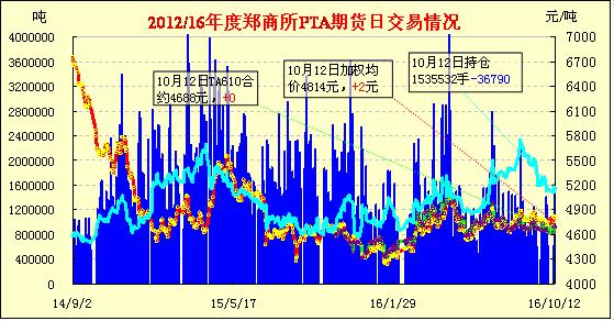 10月12日PTA期貨成交及持倉(cāng)排名表