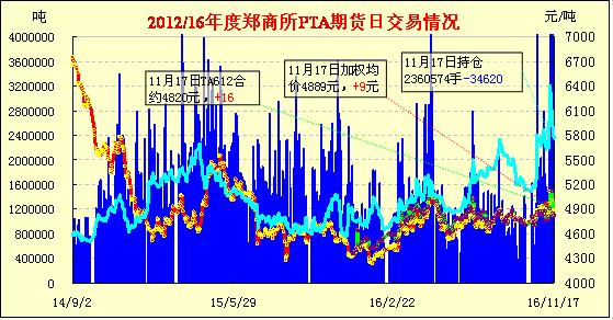 | 11月17日PTA期貨成交及持倉(cāng)排名表 | |||||||||