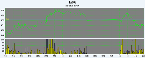 | TA609 | 4500 | 4540 | 4490 | 4512 | 4522 | 0 | 81786 | -3820 | 2153018 | 162330 | -2230 |