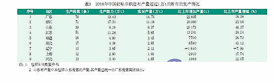 2006年全國擁有紡粘非織造布生產(chǎn)線的18個省、 市、自治區(qū)主要集中在東南沿海地區(qū), 發(fā)展不是很平衡 (表3)。