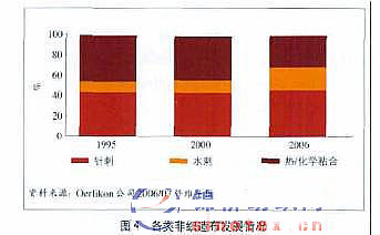 2006 年熱粘合非織造布(包括熱風(fēng)和熱軋)產(chǎn)量14.9萬t, 其中熱風(fēng)為4.4萬t, 比2005年略有減少,熱為10.5萬t, 比2005年有所增加。 熱風(fēng)非織造布在這一中應(yīng)用量增加不多, 相反由于企業(yè)間的競爭劇烈, 利潤間不高,開工不足。