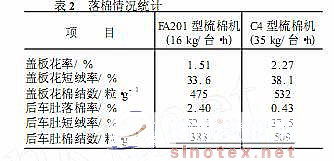 蓋板倒轉(zhuǎn)對(duì)棉結(jié)的有效排除情況見表2。從表2可見,C4型梳棉機(jī)的蓋板花率和蓋板花棉結(jié)含量均明顯大于FA201型梳棉機(jī)。因此,調(diào)整好蓋板入口第一點(diǎn)隔距是用好這項(xiàng)技術(shù)的關(guān)鍵。由此可以推斷,蓋板倒轉(zhuǎn)并增大其運(yùn)行速度,可以增大棉結(jié)的排除量。