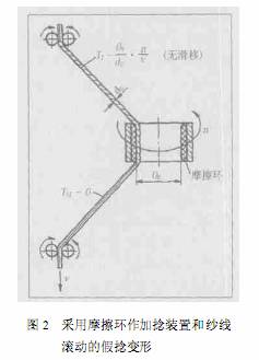 ![]() ![]() 捻度傳遞時(shí)由于紗線扁平而增加假捻。紗線(圖6)位于橫向曲率半徑等于紗線半徑的三維槽中,因此沒(méi)有變平也就不會(huì)產(chǎn)生捻度傳遞。在實(shí)際的假捻應(yīng)用中,不會(huì)發(fā)生這種情況。紗線張力很高和粗號(hào)紗時(shí),由于握持線的摩擦?xí)缘偷?span>nt產(chǎn)生紡紗捻度逃逸。