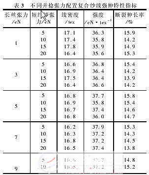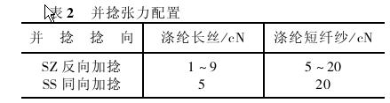 近年來,隨著新型紡紗工藝技術的發(fā)展,復合紗線產品也隨之大量涌現。其中,利用滌綸長絲和滌綸短纖紗通過復合工藝生產的高檔滌綸縫紉線,市場前景廣闊。這種新型滌綸縫紉線彌補了長絲和短纖紗的缺陷,較大地提高了縫紉線的強度,能適應高速縫紉機使用,并在縫紉質地較厚的服裝時,不會發(fā)生斷線現象。 復合高檔縫紉線按其復合方法可分為包芯線和并捻線等類型。包芯線是由短纖維包覆長絲形成皮芯結構的包芯紗(在環(huán)錠細紗機上增添包芯紗裝置進行生產)經并紗捻線而成,而并捻線是由長絲和短纖紗直接經并紗捻線而成。并捻線與包芯線相比,具有如下特點: ?。?)細紗設備不需更新,操作方便,并可減少用工 (2)可使用常規(guī)的并捻設備進行生產 ?。?)加工費用低 ?。?)可控制長絲和短纖紗的并合比例 (5)不會出現包芯線常見的空芯、露芯、空鞘等紗疵?!? 因此,其產品更加多樣化,經濟效益也更加顯著。 1 試驗材料、設備型號和并捻張力 1.1 試驗材料及設備 并捻復合紗線采用的滌綸長絲和滌綸短纖維紗規(guī)格見表 1。采用 FA702 型并紗機、FA721 型捻線機。 1.2 并捻張力 由于 S 捻向的滌綸短纖紗在 Z 向加捻的前期會出現退捻伸長,而無捻滌綸長絲加捻后則會產生捻縮。因此,Z 向并捻時應加大滌綸短纖維紗的張力,減小長絲的張力。試驗中并捻張力的配置見表 2?!? 2 試驗與分析 2.1 并捻張力對復合紗線強伸特性的影響 無捻長絲和 S 捻短纖紗在按 Z 向并捻時的張力配置及對應的復合紗線的強伸特性見表 3,其復合捻度為 120 捻 /10 cm?!?nbsp; 復合紗線的強度與長絲并捻張力之間的關系見圖 1。 由圖 1 可知:(1)隨著滌綸長絲并捻張力的增大,復合紗線的斷裂強度基本呈現先增大后減小的趨勢 (2)當兩組分同時斷裂時,成紗斷裂強度達到最大值。 圖1 復合紗線的強度與長絲并捻張力之間的關系 2.2 并捻捻度對復合紗線強伸性能的影響 滌綸長絲并捻張力為 5 cN,滌綸短纖紗并捻張力為 15 cN 時,Z 向并捻復合紗線的捻度與成紗的強伸性能指標見表 4。 由表 4 可知隨著成紗捻度的增大,復合紗線的斷裂強度呈先增大后減小的變化規(guī)律,與常規(guī)并捻紗線相一致。由于長絲和短纖紗組成的并捻復合紗線也存在一個臨界捻度,可通過采取適當的捻度或捻比,來獲得較高的成紗強度?!? 性能的影響試驗條件同上,試驗結果見表 5。 由表 5知,隨著滌綸長絲含量的增加,復合紗線的強度隨之增大。 2.4 不同復合捻向對復合紗線的影響 異向并捻紗線中,兩個組分分層現象非常明顯,其中滌綸短纖紗呈螺旋線狀包覆于滌綸長絲的外層,滌綸長絲呈直線狀位于復合紗線的中心 而同向并捻紗線,長絲和短纖紗的復合結構比較均勻,毛羽也較少。 同向加捻和異向加捻時,復合紗線的拉伸斷裂曲線形狀有所變化,但差異不大。同向加捻的復合紗線有較低的模量、較大的斷裂伸長率和稍高的斷裂強度。 3 結語 (1)選擇并捻過程中長絲和短纖紗的合理并捻張力配置,有助于緩解它們的結構和性能差異對復合紗線的外觀和性能指標的不利影響?!? ?。?)選取適當的捻度或捻比,將會提高復合紗線的強度等力學性能。 ?。?)選取不同并合比例的長絲和短纖紗,可以獲得不同用途的復合紗線。 ?。?)不同于一般短纖紗線的包芯紗線的異向加捻,采用同向加捻,將獲得外觀和性能更佳的并捻復合紗線?!? ?。?)生產并捻滌綸縫紉線的過程中,掌握以上要點,減少并捻復合紗線特有的紗疵,才能保證長絲和短纖紗的染色一致性。