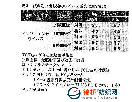 6、康潔紡的抗病毒效果:光觸媒的抗病毒效果過去只是理論上的推想,去年2月,經(jīng)光觸媒加工處理的口罩無(wú)紡布,經(jīng)日本北里環(huán)境中心病毒部采用A型流感病毒(實(shí)驗(yàn)方法JISR1702)檢測(cè),抗病毒率達(dá)到99.98%,這一結(jié)論也讓國(guó)際病毒專家們吃驚,在甲型H1N1流感流行期間,光觸媒口罩被日本政府作為醫(yī)用物資收儲(chǔ) 7、康潔紡的產(chǎn)品認(rèn)證情況: 2006年首家通過日本纖維評(píng)價(jià)技術(shù)協(xié)議會(huì)認(rèn)證 2007年首家通過日本纖維制品抗菌、消臭SEK認(rèn)證 2009年通過日本光觸媒工業(yè)會(huì)PJA-JISR1702認(rèn)證 2009年JISR1702標(biāo)準(zhǔn)被國(guó)際標(biāo)準(zhǔn)化組織認(rèn)證為ISO國(guó)際標(biāo)準(zhǔn),標(biāo)準(zhǔn)號(hào)ISO20743-2009 康潔紡的中國(guó)檢驗(yàn)狀況: 2009年8月通過中國(guó)室內(nèi)環(huán)境與室內(nèi)環(huán)保產(chǎn)品質(zhì)量監(jiān)督檢驗(yàn)中心QB/T2761-2006《室內(nèi)空氣凈化產(chǎn)品凈化效果測(cè)定方法》檢測(cè),對(duì)空氣中甲醛、TVOC有一定祛除作用。(2支40W家用日光燈平行照射,24小時(shí)后甲醛濃度下降68%,TVOC濃度下降64%) 2010年2月通過中國(guó)疾病預(yù)防控制中心環(huán)境與健康相關(guān)產(chǎn)品安全所依據(jù)《化妝品衛(wèi)生規(guī)范》2007年版產(chǎn)品安全性檢測(cè); 急性經(jīng)口毒性試驗(yàn)經(jīng)檢測(cè)為實(shí)際無(wú)毒級(jí)(報(bào)告編號(hào):2009KF1042); 多次皮膚刺激性試驗(yàn)經(jīng)檢測(cè)為無(wú)刺激性(報(bào)告編號(hào):2009KF1043); 皮膚變態(tài)反應(yīng)試驗(yàn)經(jīng)檢測(cè)結(jié)果為未見皮膚變態(tài)反應(yīng)(報(bào)告編號(hào):2009KF1044); |