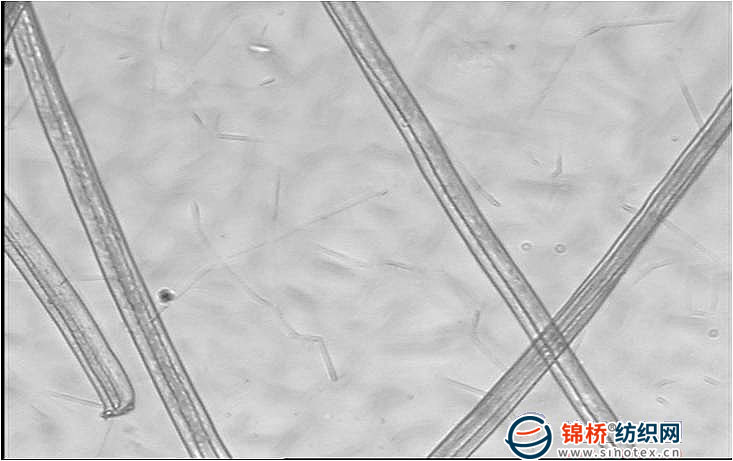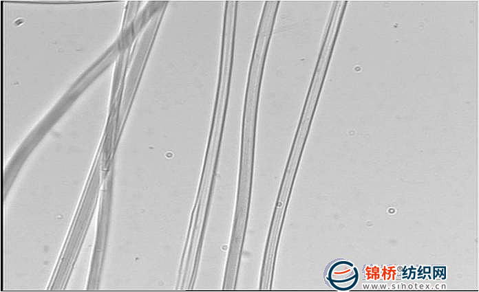 有人認(rèn)為:通過(guò)使用化學(xué)試劑區(qū)分出再生纖維素纖維(主要是指莫代爾纖維、萊賽爾纖維、竹纖維等新型再生纖維素纖維,普通粘膠纖維、銅氨纖維、醋纖、三醋纖除外)以后,再將其外觀形態(tài)(縱向形狀和橫截面形狀)與FZ/T01057.3-2007《紡織纖維鑒別試驗(yàn)方法第3部分:顯微鏡法》的附錄B中所列各種纖維的橫截面、縱面形態(tài)特征及附錄C中所列各種纖維的橫截面、縱面形態(tài)顯微照片對(duì)照,找到相符者或基本相似者對(duì)號(hào)入座,確定出是莫代爾或萊賽爾等具體再生纖維素纖維名稱,這顯然是不科學(xué)的。為了證明其不科學(xué)性,筆者通過(guò)某知名大型紡織廠找到四種莫代爾纖維,一種是臺(tái)灣產(chǎn)莫代爾纖維,一種是奧地利產(chǎn)莫代爾纖維,一種是叫紐代爾纖維,一種是莫代爾纖維,這四種莫代爾纖維都屬于再生纖維素纖維,且都叫“莫代爾纖維或紐代爾纖維”,這四種再生纖維素纖維的縱向形狀,分別見(jiàn)圖1、圖2、圖3、圖4: