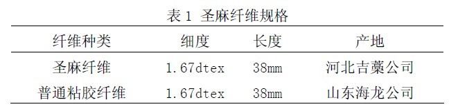 2.1實(shí)驗(yàn)樣品實(shí)驗(yàn)中所用圣麻纖維和粘膠纖維規(guī)格見表1。