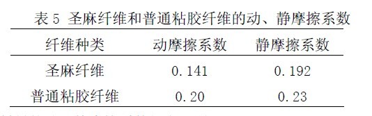 3.3圣麻纖維與普通粘膠纖維的摩擦性能圣麻纖維與普通粘膠纖維的動(dòng)、靜摩擦系數(shù)如表5所示。