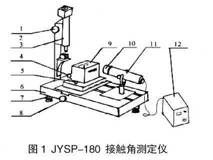 一是開機。將儀器插上電源,打開電腦,雙擊桌面上的JYSP-180應(yīng)用程序進入主界面,這時可以看到攝像頭拍攝的載物臺上的圖像。二是加入樣品。將微量注射器固定在載物臺上方,裁取一小塊兒樣品放置在注射器正下方。放置樣品時,要使樣品表面產(chǎn)生的圖像盡量平整,并在一條水平線上,不產(chǎn)生起伏不平的圖像。緩慢旋轉(zhuǎn)注射器上方的旋鈕抽取液體,使一滴水滴滴在樣品表面上。這時可以從圖像中看到進樣器下端出現(xiàn)一個小液滴。三是調(diào)焦。調(diào)整攝像頭焦距及攝像頭的高度,直至在圖像中出現(xiàn)一個清晰的小水滴。四是量角法。點擊測量,選擇三點法。進入三點法主界面,然后用鼠標(biāo)左鍵順次點擊液滴的頂端和液滴的左、右兩端與試樣的交點,記錄所得到的接觸角。五是保存圖像。點擊界面左上角的文件按鈕,再點擊保存圖像按鈕將圖像保存在文件夾中。