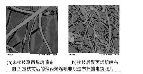 (a)未接枝聚丙烯熔噴布(b)接枝后聚丙烯熔噴布