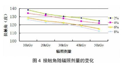 圖4接觸角隨輻照劑量的變化