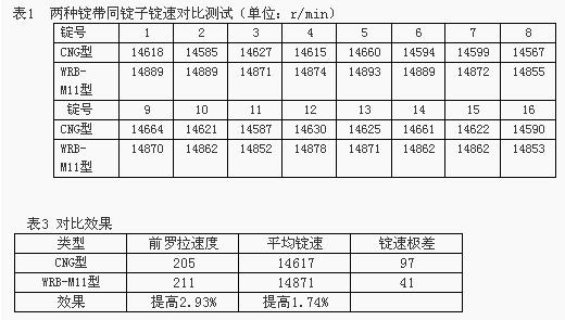 ?。?)同臺同錠同品種對比試驗,不改變細(xì)紗工藝。(前后分別采用新CNG型錠帶及新WRB-M11型齒接錠帶進(jìn)行對比試驗)