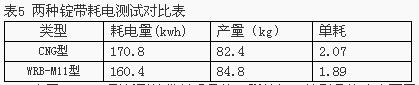 由于WRB-M11型新型錠帶材質(zhì)柔軟、彈性好,特別是接頭表面平整,軟硬與帶體一致,在高速的彎折傳動中穩(wěn)定性好,在同樣的帶輪加壓下,錠帶與錠盤、帶托接觸好,運(yùn)行平穩(wěn),滑溜率少,從而無功損耗少,達(dá)到節(jié)電的目的。在同等條件下經(jīng)實際測定,該新型錠帶要比CNG型錠帶單耗要低,效益可觀。