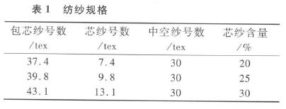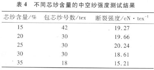 試驗結果表明,在芯紗含量為25%時中空紗達到最優(yōu)的強度值。