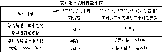 據報道,個人衛(wèi)生護理用品每年大約用去95%的吸水樹脂,采用高吸水性纖維制造的嬰兒尿片、成人失禁墊等不但吸收速率高、吸量大,而且更加舒適、貼膚;餐巾、抹布、手紙中加人高吸水性纖維也可大大提高其使用性能。表1對幾種衣料的吸水性能作了一個比較,從中可見添加了高吸水性纖維的貼身衣物能更有效地保持皮膚干爽,人體舒適感大大增加。