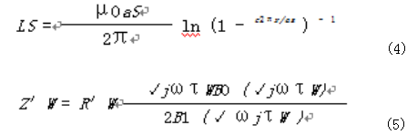 其中Z′W為金屬絲單位長(zhǎng)度的內(nèi)部阻抗,▽S為表面微分算子。絲網(wǎng)的電感LS和單位長(zhǎng)度上的內(nèi)阻抗Z′W為