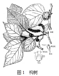 構(gòu)樹Broussonetiapapyrifera(L.)Vent為桑科構(gòu)屬直立落葉喬木,如圖1所示.廣泛分布于華東、華南、西南及河北、山西、陜西、甘肅、湖北、湖南等地.桑科構(gòu)屬植物全世界共有4種,中國境內(nèi)有3種,其中2種可作藥用.構(gòu)樹的果實、樹葉、枝條、莖皮部乳汁和根皮均可人藥[1]
