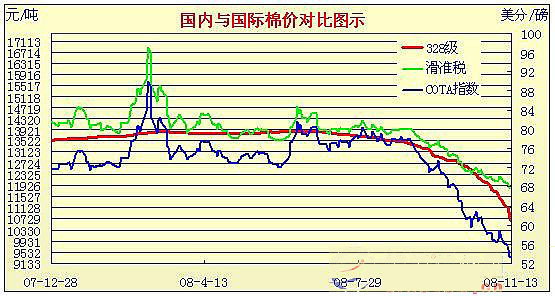 08年8月29日-08年11月13日國內(nèi)外棉價對比圖表