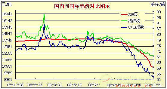 08年8月29日-08年11月21日國(guó)內(nèi)外棉價(jià)對(duì)比圖表