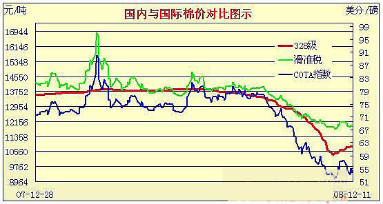 08年10月31日-08年12月11日國內外棉價對比圖表