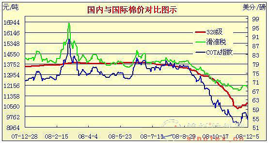 08年10月31日-08年12月5日國內(nèi)外棉價對比圖表