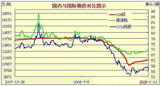 08年11月28日-09年1月13日國內(nèi)外棉價對比圖表