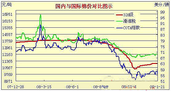 08年11月28日-09年1月21日國內(nèi)外棉價對比圖表
