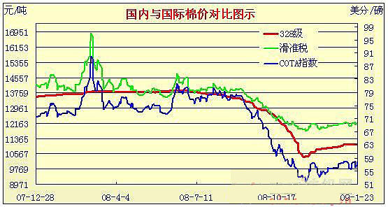 08年11月28日-09年1月23日國內(nèi)外棉價對比圖表