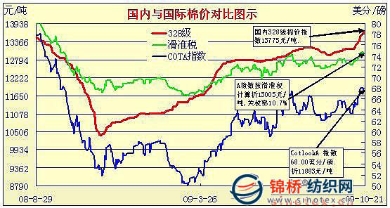 國內(nèi)外棉價(jià)對比圖表(9月30日-10月21日)