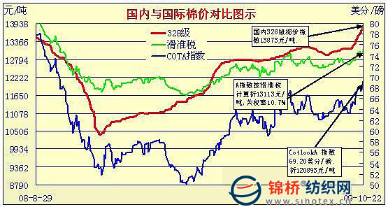 國(guó)內(nèi)外棉價(jià)對(duì)比圖表(9月30日-10月22日)