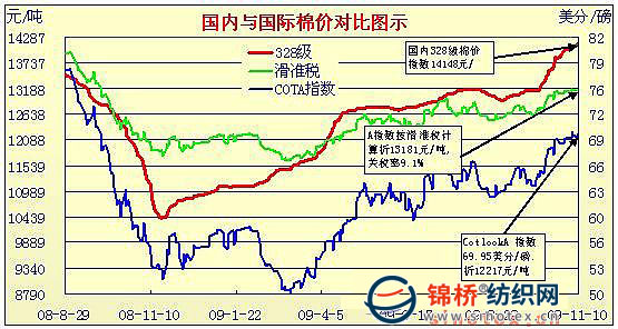 國(guó)內(nèi)外棉價(jià)對(duì)比圖表(9月30日-11月10日)