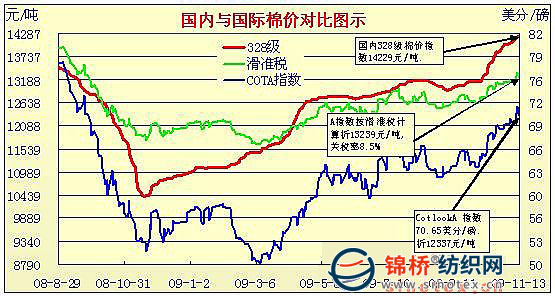 錦橋紡織網(wǎng)—資訊頻道> 棉花信息> cotlook>正文 國內(nèi)外棉價對比圖表(9月30日-11月13日)