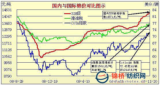 國內(nèi)外棉價(jià)對(duì)比圖表(9月30日-11月20日)