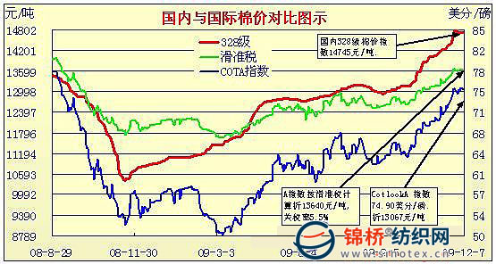錦橋紡織網(wǎng)—資訊頻道> 棉花信息> cotlook>正文 國內(nèi)外棉價對比圖表(10月30日-12月7日)