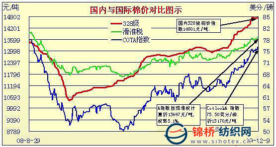 國(guó)內(nèi)外棉價(jià)對(duì)比圖表(10月30日-12月9日)