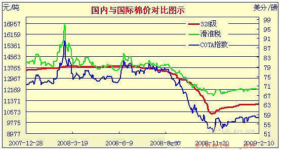 08年12月31日-09年2月9日國內外棉價對比圖表