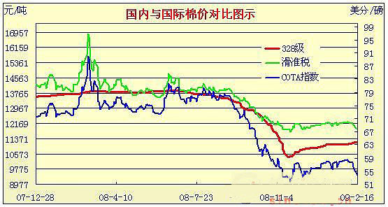 08年12月31日-09年2月17日國內(nèi)外棉價對比圖表