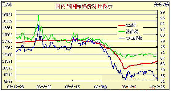 08年12月31日-09年2月26日國內外棉價對比圖表
