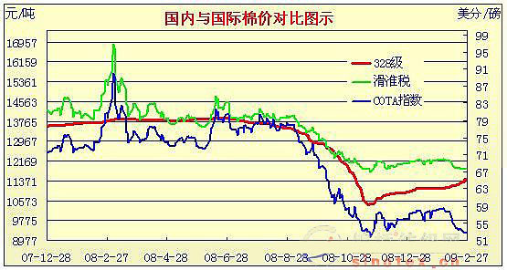 08年12月31日-09年2月27日國內(nèi)外棉價對比圖表